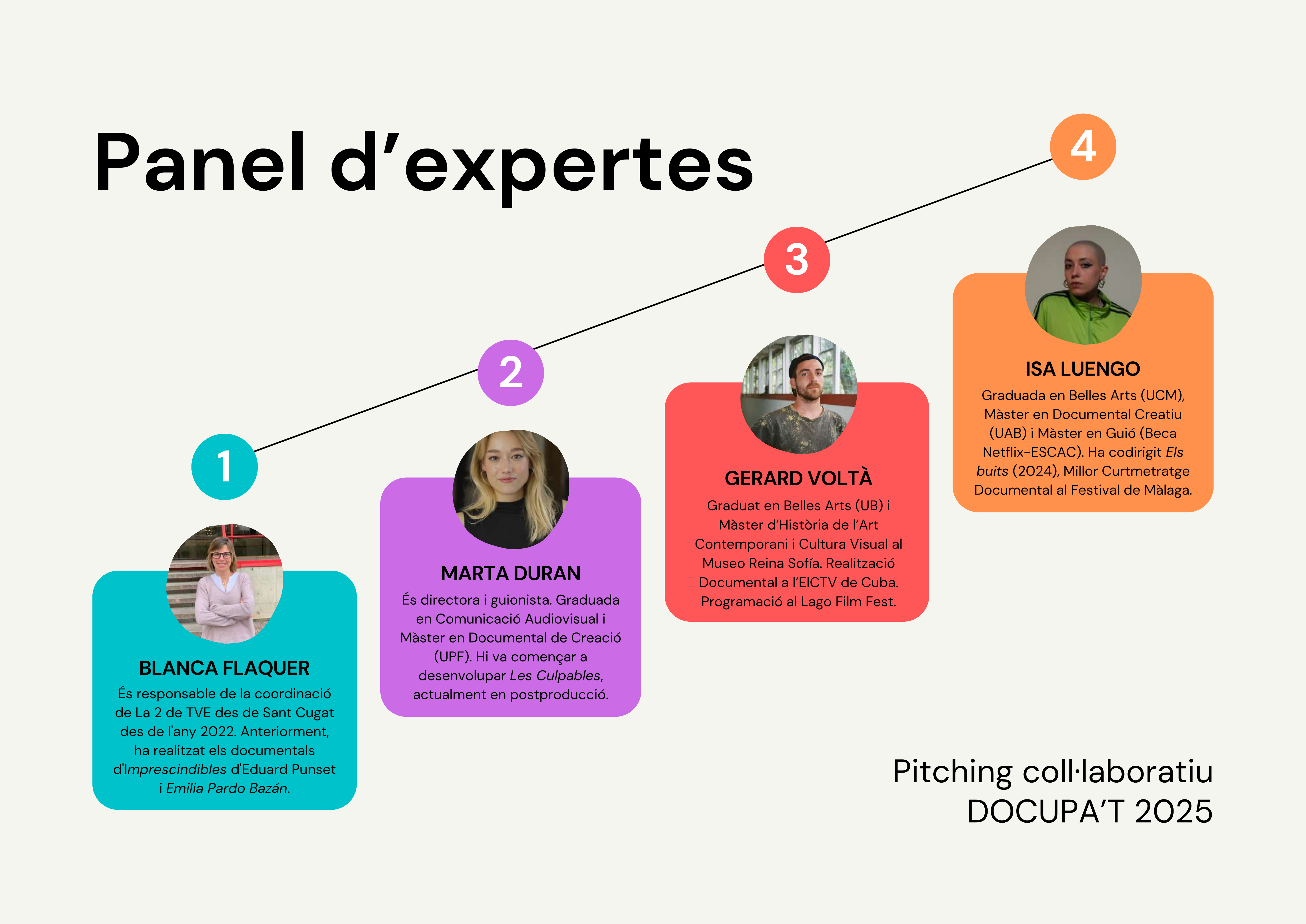Amb aquesta iniciativa, DOCUPA’T es consolida com un espai de trobada i intercanvi per a creadors i creadores del cinema documental, fomentant la col·laboració, la reflexió crítica i la connexió amb el teixit universitari, professional.